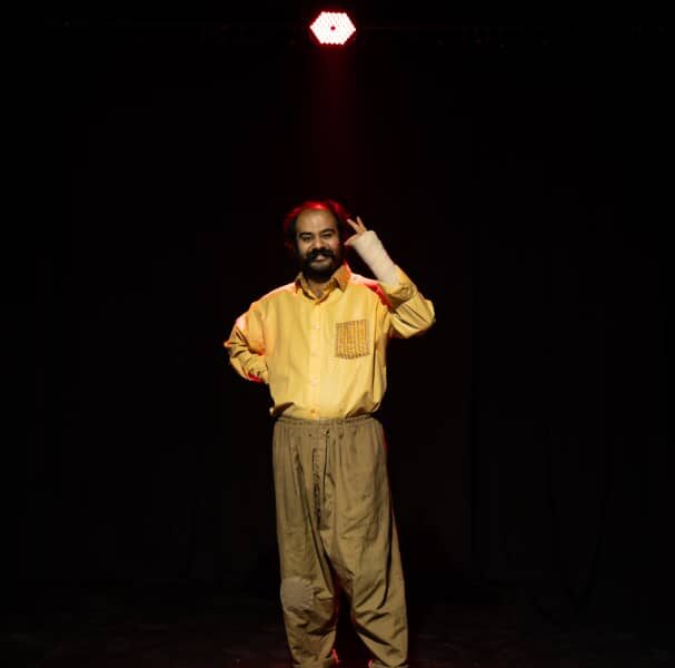 – این کاری که الان من در مرحله ی اجرا هستم یه نمایش تک پرسوناژ هستش که نویسنده ی کار فرهاد نقد علی عزیز هستش این نمایش قابلیت های زیاده اجرایی داشت و من انتخابم این بود ک این متن رو به صورت مونولوگ اجرا کنم متن یک کاراکتر اصلی به نام خلیل حلبی دارد و حدود ۱۱ نقش دیگه که تمامی نقش هارو خودم بازی میکنم و برای تک تکشون تیپ های بدنی مختلف و لحن مختلف در نظر گرفتم و مجموعا ۱۲ نقش رو تو این کار بازی میکنم