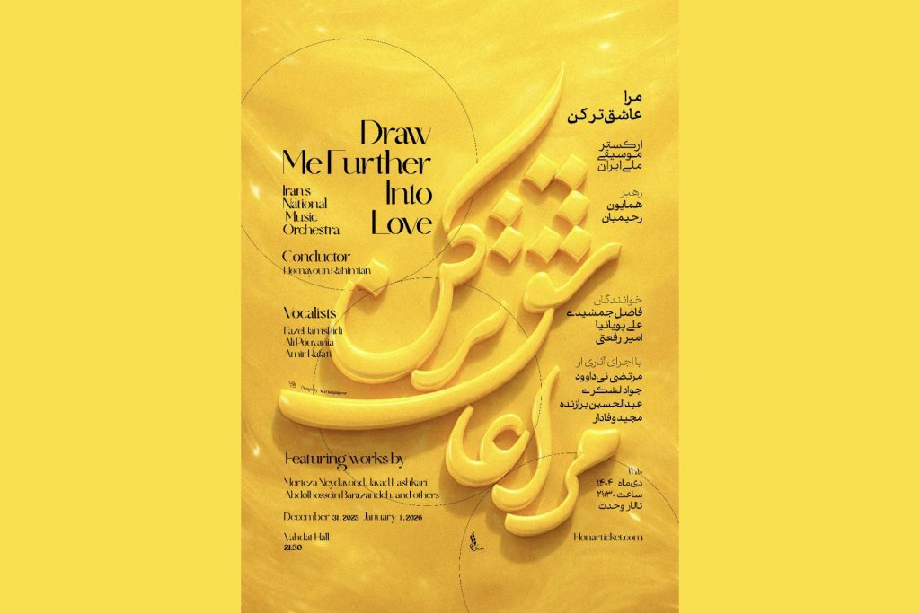 ارکستر موسیقی ملی ایران به رهبری همایون رحیمیان، نخستین کنسرت زمستانی خود را با عنوان «مرا عاشق تر کن…» در روزهای ۱۰ و ۱۱ دیماه ۱۴۰۴، ساعت ۲۱:۳۰ در تالار وحدت اجرا میکند .در این برنامه، خوانندگان برجستهای مانند فاضل جمشیدی، علی پویانیا و امیر رفعتی ارکستر را همراهی میکنند و منتخبی از آثار ماندگار آهنگسازان بزرگ ایرانی شامل مرتضی نیداوود، جواد لشکری، عبدالحسین برازنده و مجید وفادار نواخته میشود .