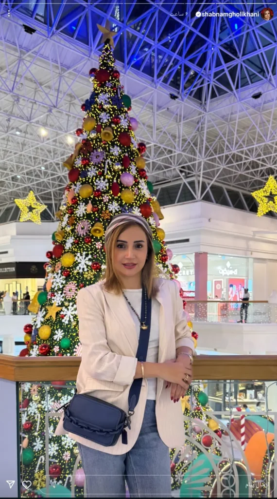 شبنم قلیخانی که با سریالهای مذهبی مثل “مریم مقدس” و نقشهای ماندگار در “دلنوازان” و “پوست شیر” به شهرت رسید، چند سالی است به دبی مهاجرت کرده. زندگی لوکسش در برجهای بلند، ماشینهای گرانقیمت و سفرهای اروپایی، همیشه سوژه رسانهها بوده. این استوریهای کریسمسی نه تنها تضاد فرهنگی جالبی با نقشهای مذهبیاش ایجاد کرده، بلکه نشاندهنده جذابیت دبی برای سلبریتیهای ایرانی است.