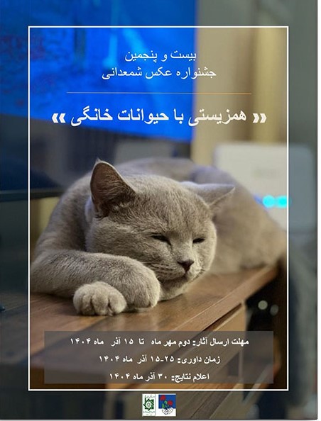 بیست و پنجمین جشنواره عکس شمعدانی در دو بخش تک عکس و مجموعه عکس با موضوع «همزیستی با حیوانات خانگی» برگزار میشود: